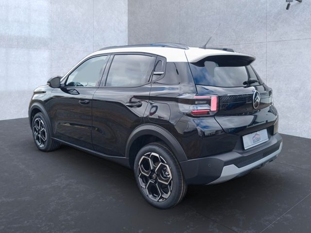 • 17-Zoll-Leichtmetallfelgen Atacamite mit Diamantschliff • Ambiente METROPOLITAN GREY– Citroën Advanced Comfort Sitze mit Stoff-/Kunstlederbezug Metropolitan Grey • 3D-LED-Rückleuchten • Dach in Perla-Nera-Schwarz oder Opal-Weiß • Einparkhilfe hinten mit Rückfahrkamera • Elektrische Fensterheber vorn und hinten • Heck- und Seitenscheiben hinten, dunkler getönt • Induktionsladung für Smartphones • Innenspiegel automatisch abblendend • Klimaautomatik • 3D Navigation mit 10,25 Zoll-Touchscreen: – Integrierte Europakarte, Sicherheitspaket – Aktiver Notbremsassistent – Aktiver Spurhalteassistent – Verkehrszeichenerkennung – Aufmerksamkeitsassistent, • Elektrische Fensterheber vorn • LED-Tagfahrlicht • Geschwindigkeitsregler und -begrenzer • Heckspoilerlippe • Citroën Head-up-Display • Isofix-Kindersitzbefestigungen hinten (außer Mitte), • Automatische Fahrlichteinschaltung,