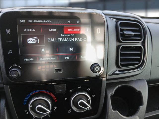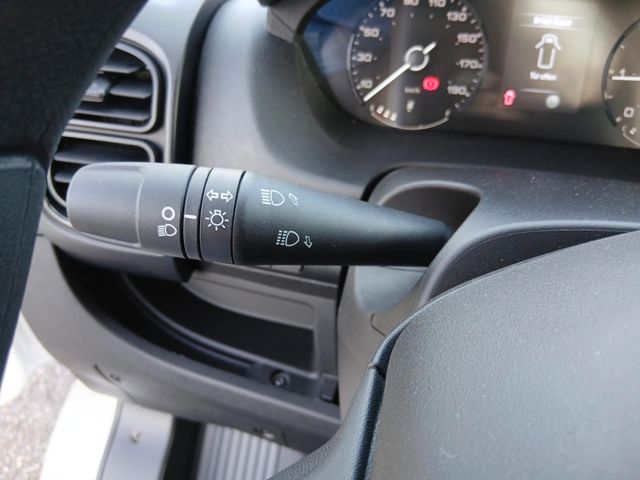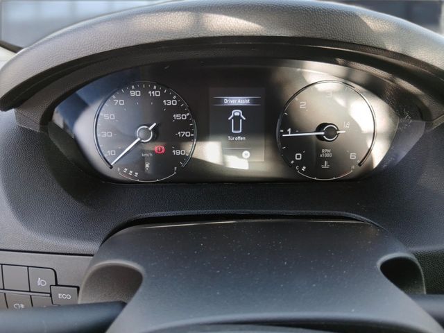 Klimaanlage manuell, Audio-System DAB: 5" Farb-Display, Digitales Radio, BluetoothFreisprecheinrichtung, Bedienhebel am Lenkrad, Außenspiegel elektrisch verstellbar und beheizbar, Geschwindigkeitsregler und -begrenzer, Rückfahrkamera mit dynamischen Gitterlinien, Kraftstofftank - 90 Liter (Adblue Tank 19 Liter), Getränkehalter (untere Mittelkonsole) + zentraler Stauraum im Armaturenbrett, Türinnenverkleidung mit Ablagefächern inkl. 1,5-Liter-Flaschenhalter, Zentralverriegelung mit Funkfernbedienung + 1 mechanischer Schlüssel, Elektrische Fensterheber vorne, Elektrische Servolenkung, Sicherheits-Kit:- Notbremsassistent (Fußgänger- und Radfahrererkennung)- Spurhalteassistent- Verkehrsschilderkennung- Müdigkeitswarner- Intelligenter Geschwindigkeitsassistent- Event Data Recorder (EDR) / Black BoxElektronische Stabilitätskontrolle (ESP):- Seitenwindassistent- Anhängerstabilitätskontrolle- Post Collision Braking (Nachkollisionsbremsung)- Überschlagsvermeidung- Antischlupfregelung (ASR)- Hydraulischer Bremsassistent (HBA)- Berganfahrhilfe- Adaptive Lastkontrolle (LAC) (Anpassung der ABS-, ASR- u. ESP-Funktionen anFahrzeugladung), Fahrersitz mit Armlehne und Lordosenstütze und Beifahrerdoppelsitzbank mit Klappfunktion in mittlerer Rückenlehne, Fahrer und Beifahrerairbag, Reifendruck-Kontrollsystem (TPMS Indirekt),